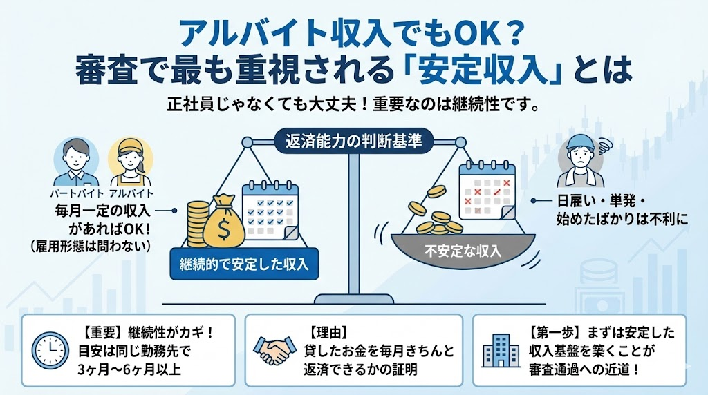 • アルバイト収入でもOK?審査で最も重視される「安定収入」とは