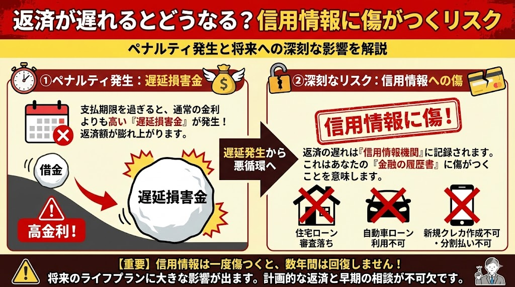 • 返済が遅れるとどうなる?信用情報に傷がつくリスク