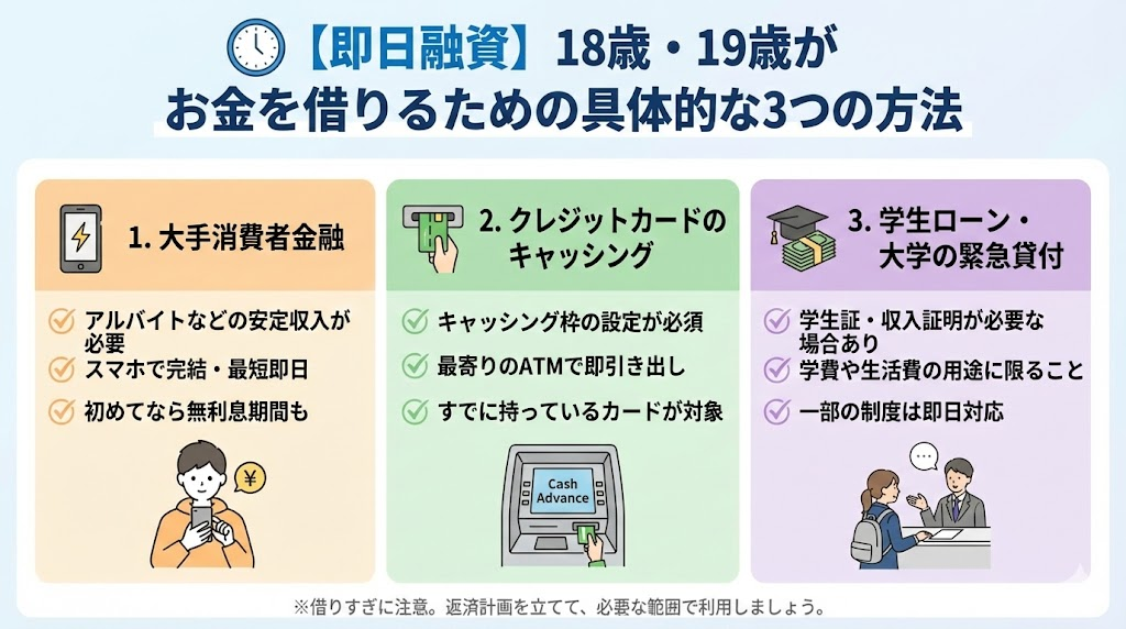 【即日融資】18歳・19歳がお金を借りるための具体的な3つの方法