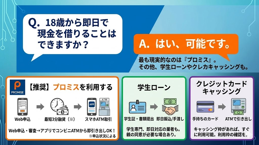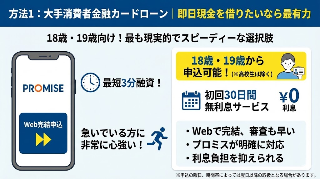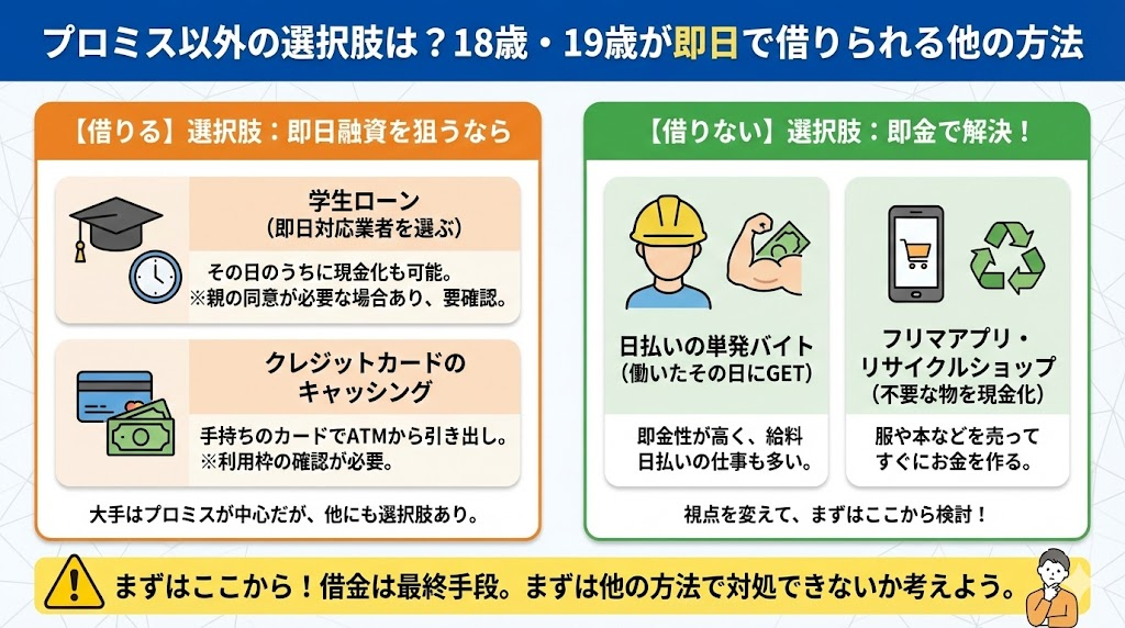 プロミス以外の選択肢は?18歳・19歳が即日で借りられる他の方法は