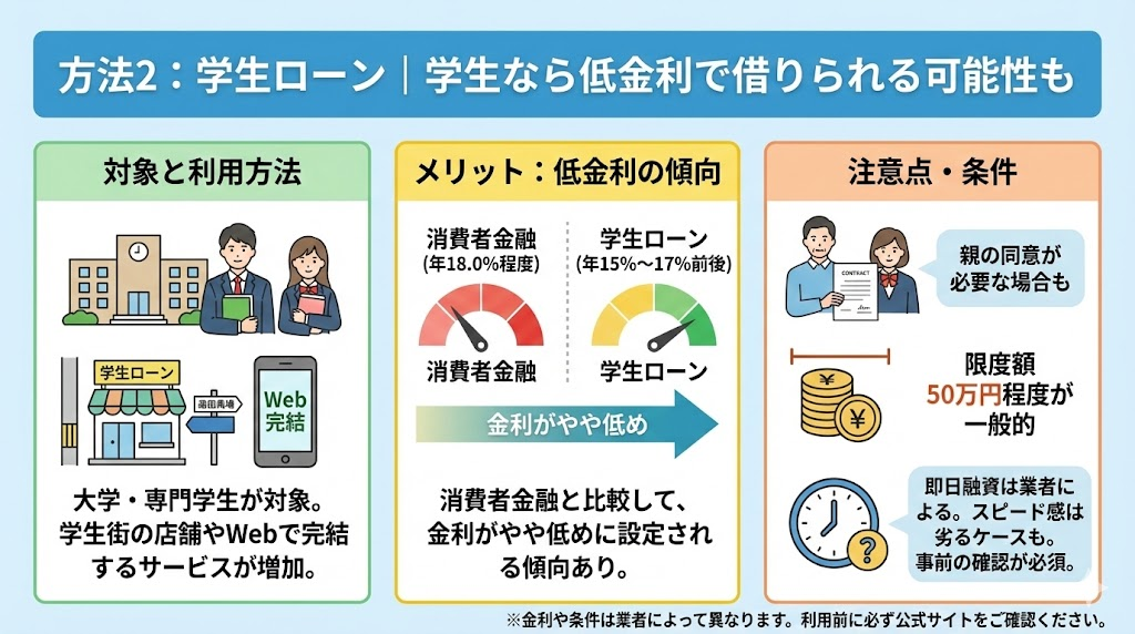 • 方法2:学生ローン|学生なら低金利で借りられる可能性も