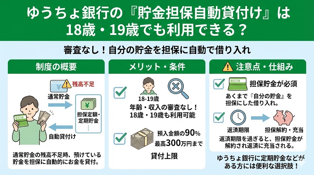 • ゆうちょ銀行の「貯金担保自動貸付け」は18歳・19歳でも利用できる?