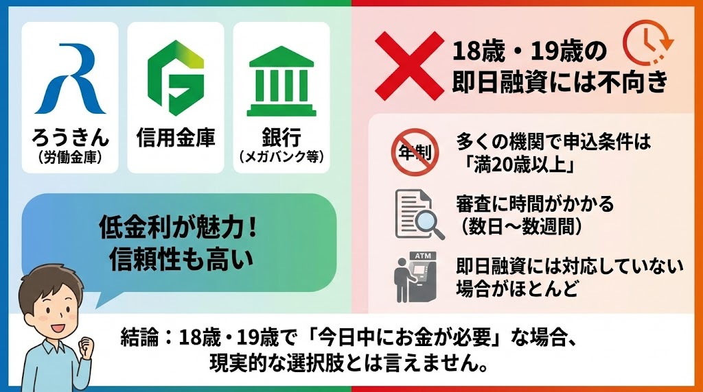 ろうきん・信金・銀行カードローンは18歳・19歳の即日融資には不向き