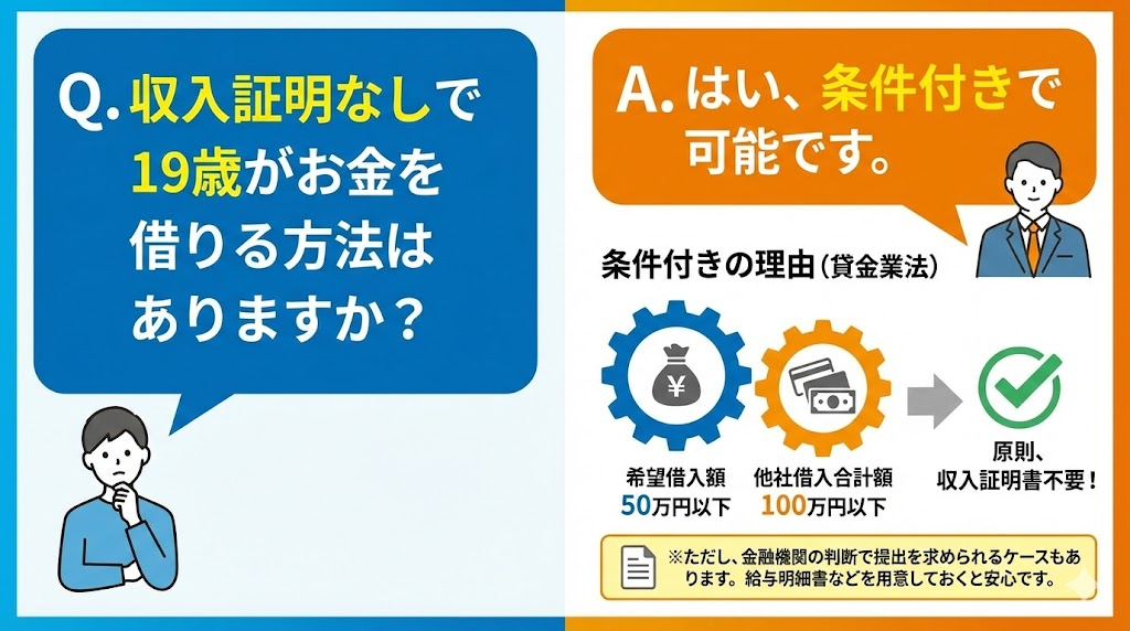 Q. 収入証明なしで19歳がお金を借りる方法はありますか?