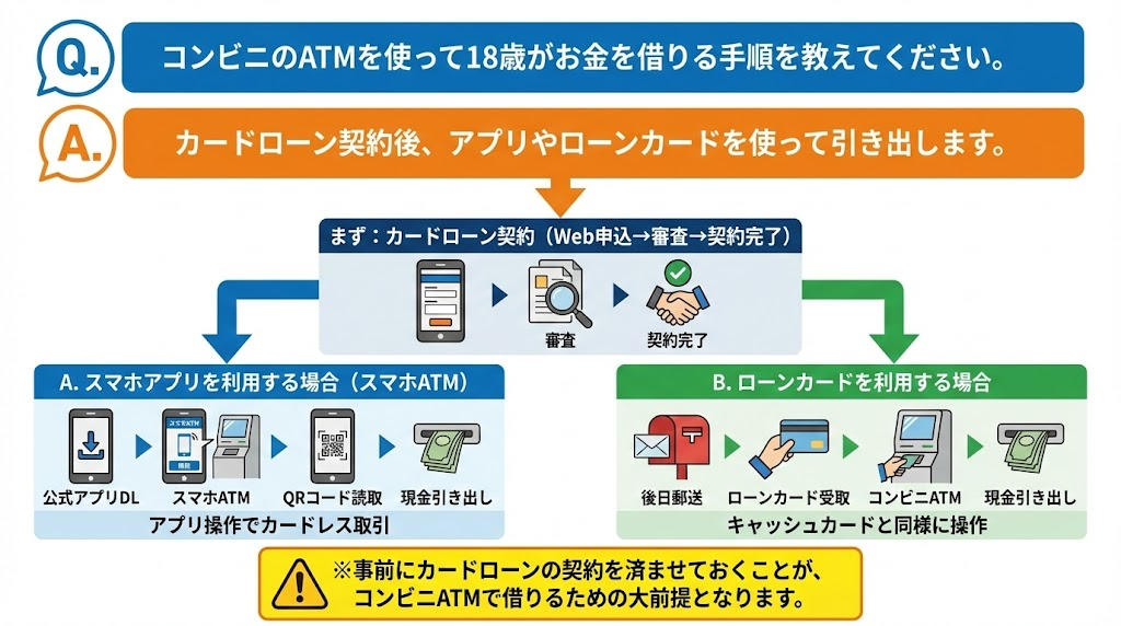 Q. コンビニのATMを使って18歳がお金を借りる手順を教えてください。