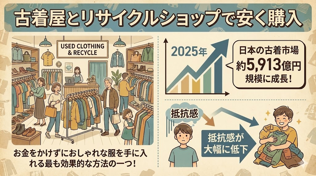 古着屋やリサイクルショップは、お金をかけずにおしゃれな服を手に入れる最も効果的な方法の一つです。2025年現在、日本の古着市場は約5,913億円規模にまで成長しており、若年層を中心に古着への抵抗感が大幅に低下しています。
