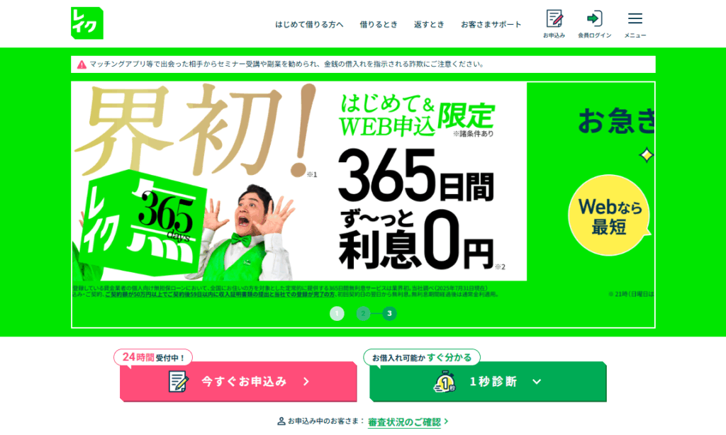 - 【レイク】選べる無利息期間が魅力!短期の借入なら断然お得