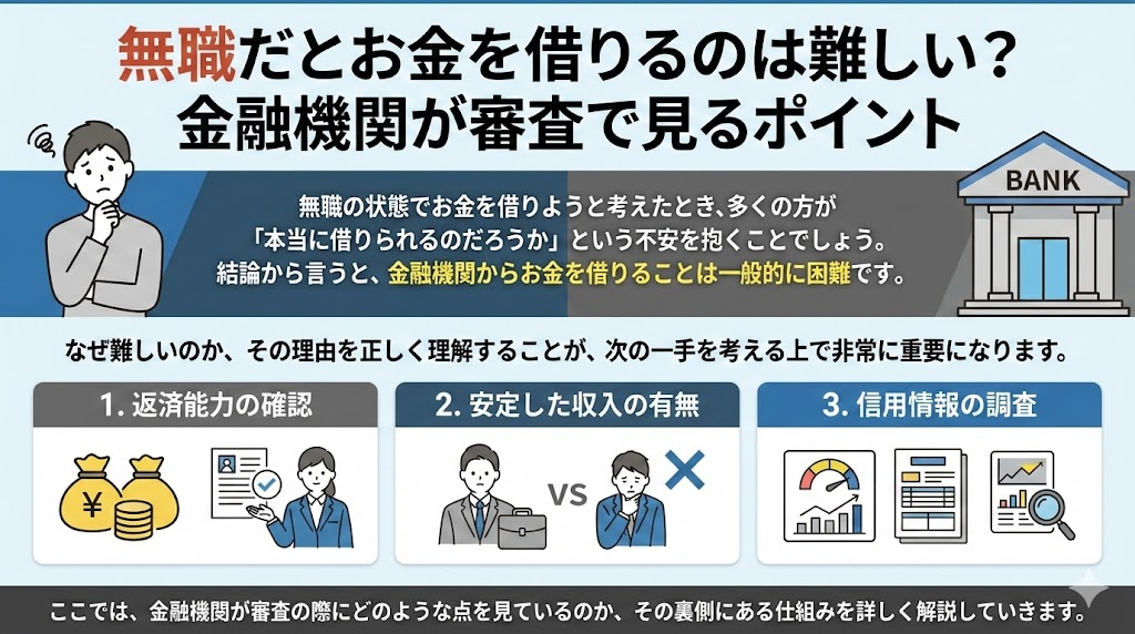 無職の状態でお金を借りようと考えたとき、多くの方が「本当に借りられるのだろうか」という不安を抱くことでしょう。結論から言うと、金融機関からお金を借りることは一般的に困難です。しかし、なぜ難しいのか、その理由を正しく理解することが、次の一手を考える上で非常に重要になります。ここでは、金融機関が審査の際にどのような点を見ているのか、その裏側にある仕組みを詳しく解説していきます。