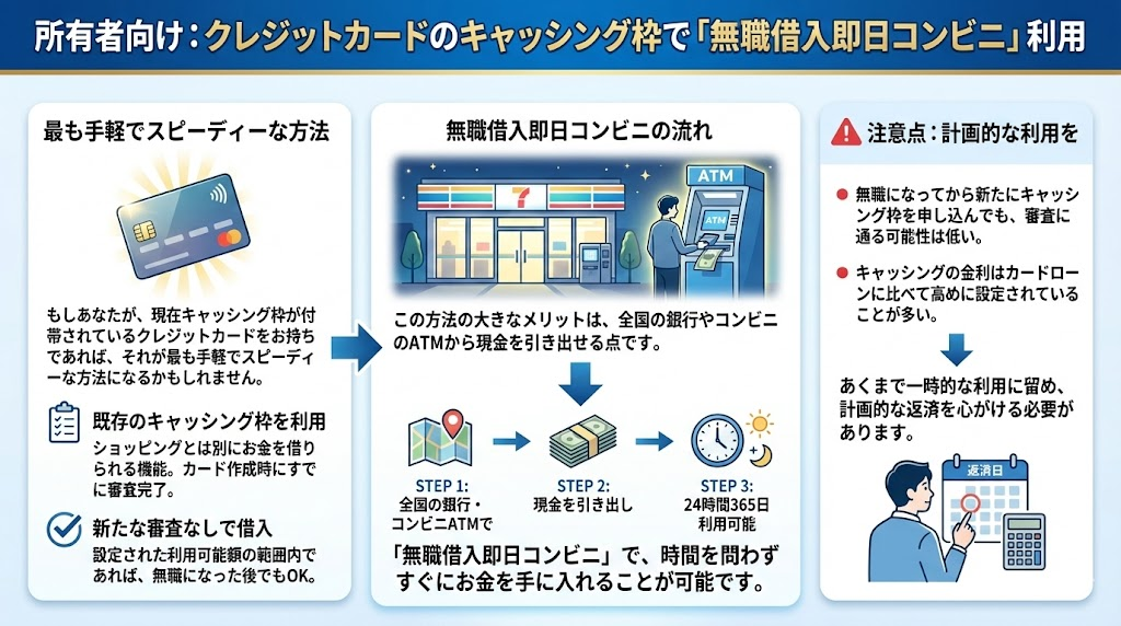 所有者向け:クレジットカードのキャッシング枠で「無職借入即日コンビニ」利用