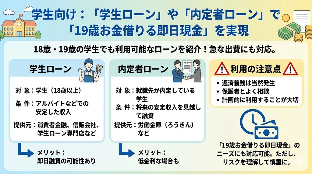 学生向け:「学生ローン」や「内定者ローン」で「19歳お金借りる即日現金」を実現