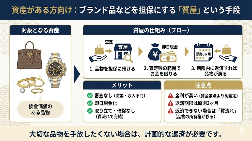 資産がある方向け:ブランド品などを担保にする「質屋」という手段