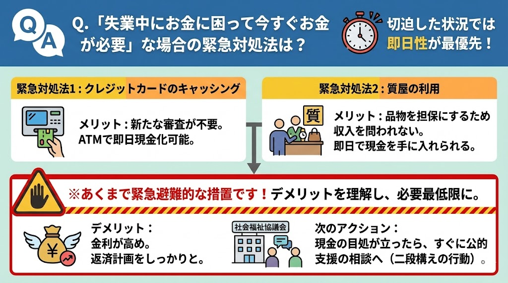 Q. 「失業中にお金に困って今すぐお金が必要」な場合の緊急対処法は?