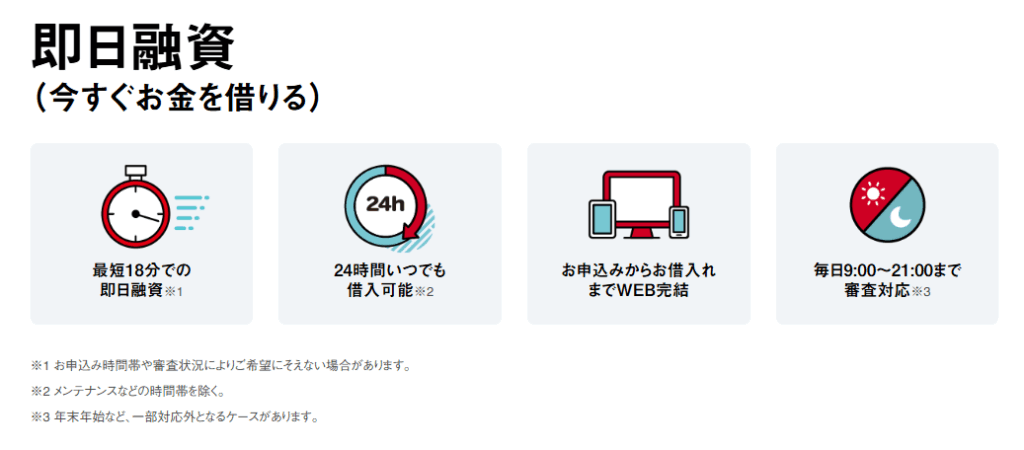 融資スピード | Webで最短15分融資も可能 ※1 |