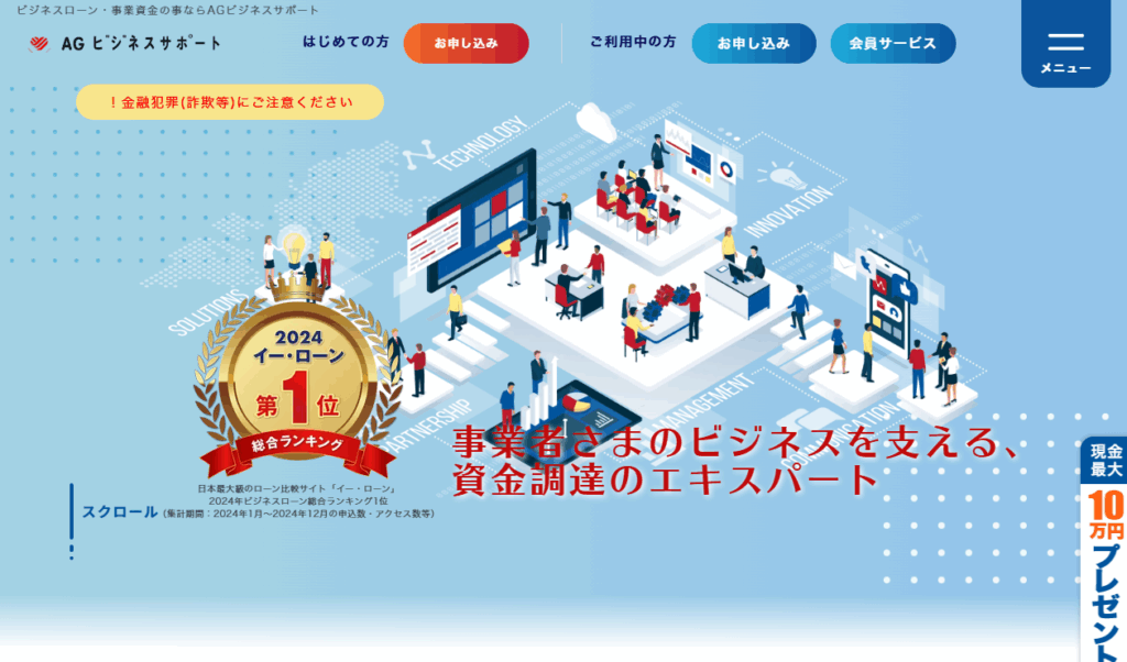 事業資金として高額な融資を希望する場合は、総量規制の対象外となるAGビジネスサポートの「事業者向けビジネスローン」に申し込むのが適切です。