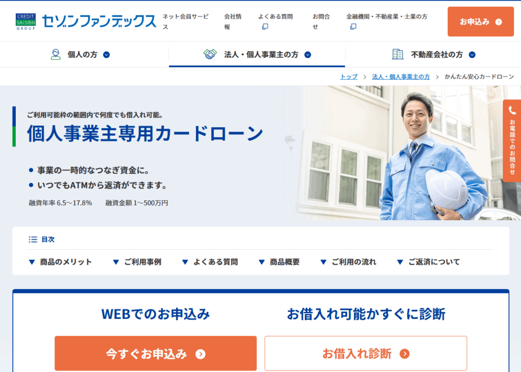 今回ご紹介したAGビジネスサポートやセゾンファンデックスの「個人事業主専用カードローン」などは、まさにその代表例です。