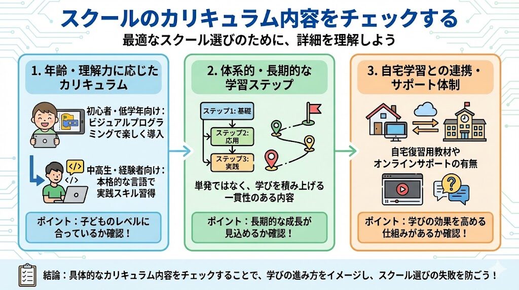 - スクールのカリキュラム内容をチェックする