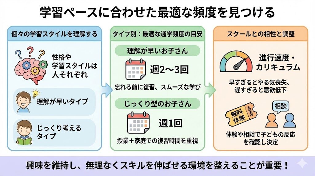 - 子どもの年齢や目的に合った適切な通学頻度を選ぶ方法
