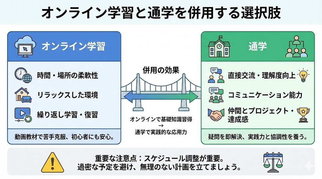 - オンライン学習と通学を併用する選択肢