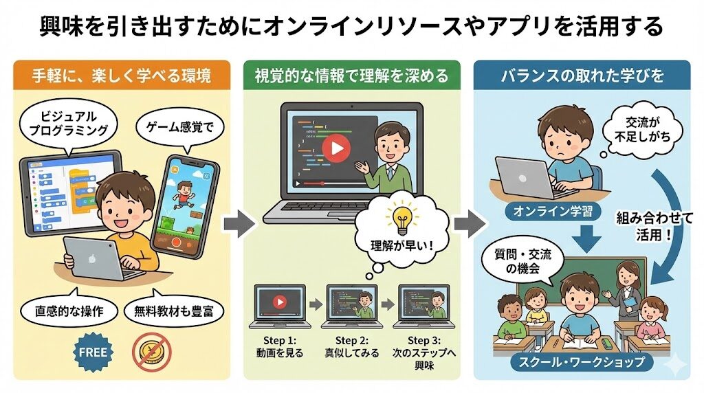 興味を引き出すためにオンラインリソースやアプリを活用する