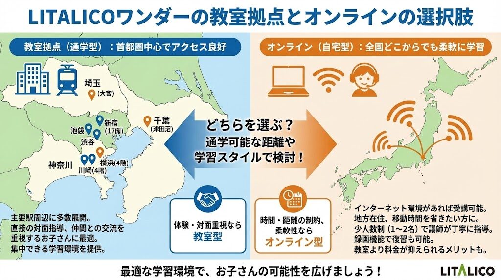 LITALICOワンダーの教室拠点とオンラインの選択肢
