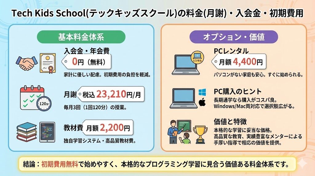 - Tech Kids School(テックキッズスクール)の料金(月謝)・入会金・初期費用