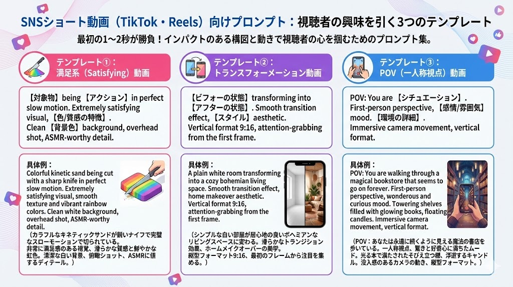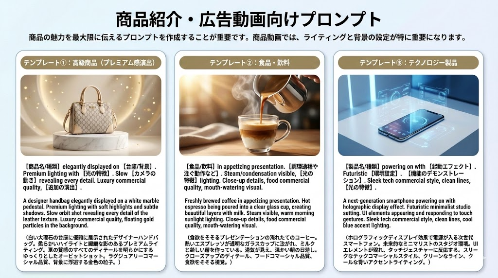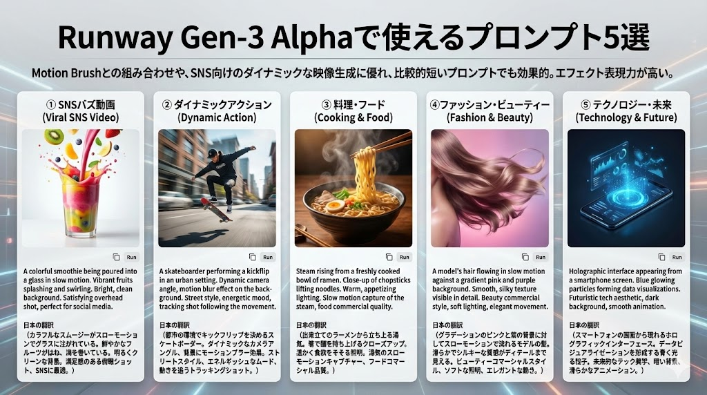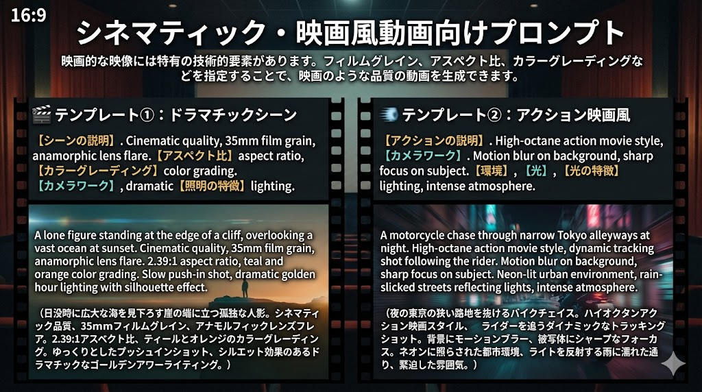 - SNS・広告・シネマティックなど用途別のコピペで使えるプロンプト