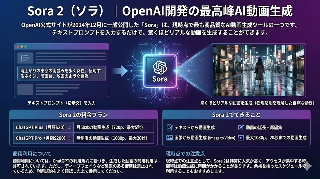 - Sora 2:OpenAI開発の最高峰AI