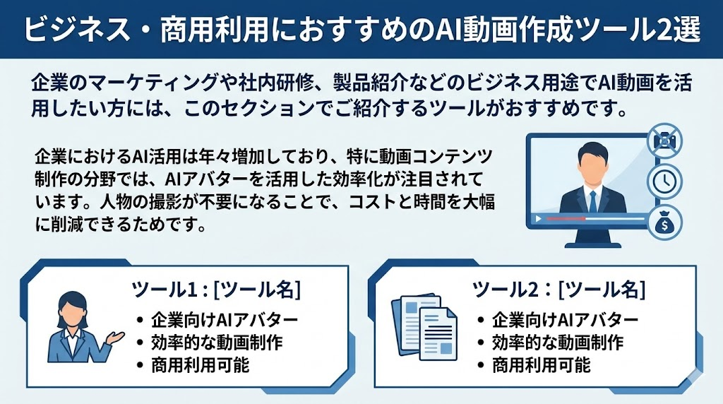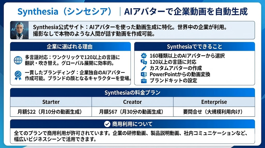 ビジネス・商用利用したい方 → Synthesia、HeyGen