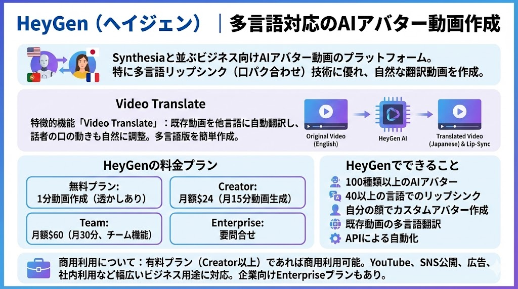 - HeyGen:多言語対応でグローバル展開