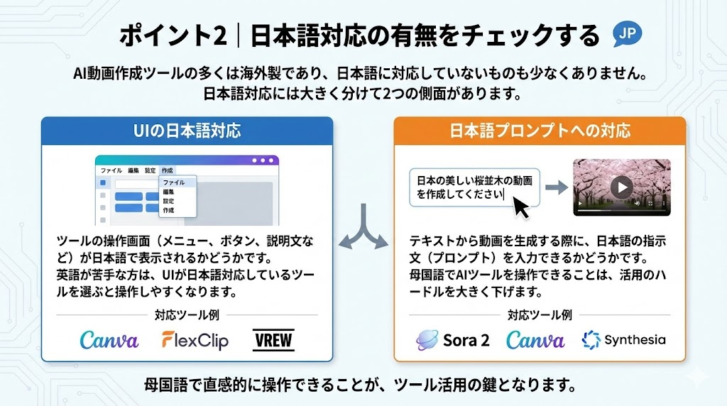 A: 主要なツールの多くが日本語プロンプトに対応しています。