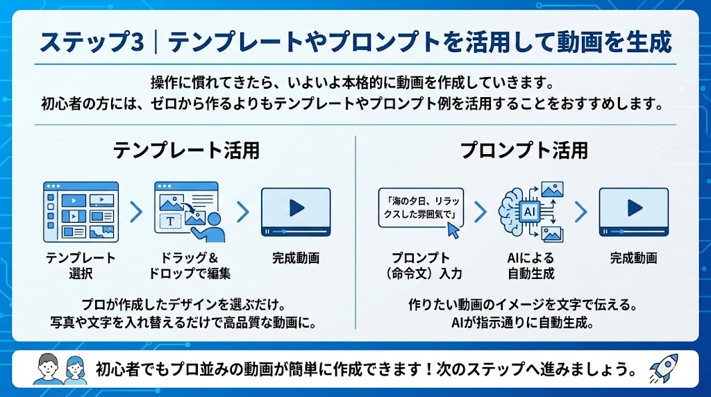 「AI動画作成は難しそう…」と感じている初心者の方も多いかもしれません。しかし、ご安心ください。最近のAI動画作成ツールは、専門知識がなくても直感的に操作できるものが増えています。