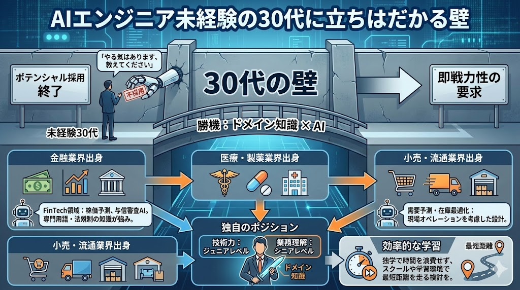 では、30代未経験からAIエンジニアになるにはどうすればいいか。勝機は「ドメイン知識 × AI」の掛け合わせにあります。